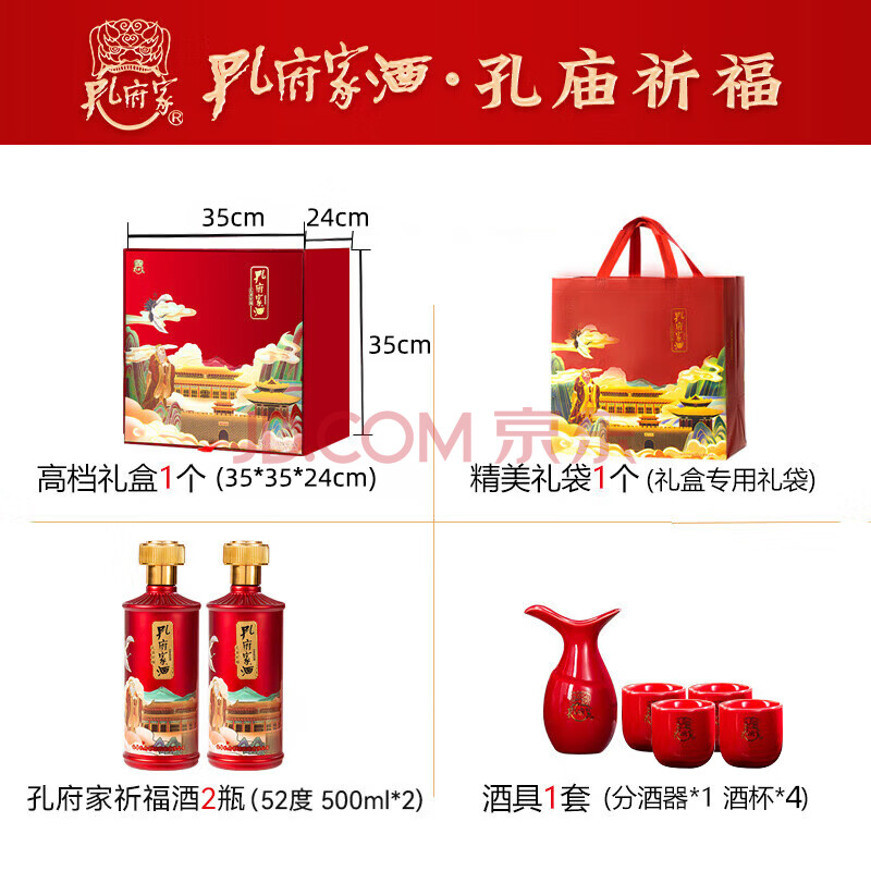 商品相册:孔府家祈福礼盒 浓香型白酒 52度 500ml*2瓶 山东名酒 自饮送礼第
