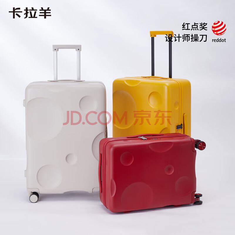 商品相册:卡拉羊芝士箱防刮纯PC行李箱24英寸大容量女拉杆箱男旅行箱8109玉白色第