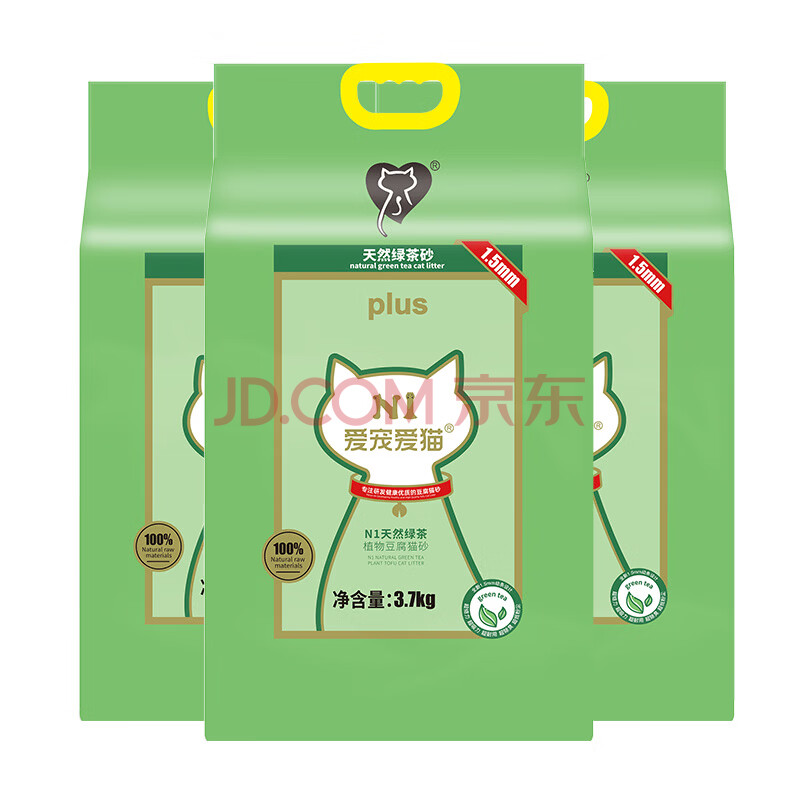 商品相册:N1 爱宠爱猫n1绿茶纯豆腐猫砂11.1kg升级1.5mm小颗粒结团紧实可冲马桶低粉尘第