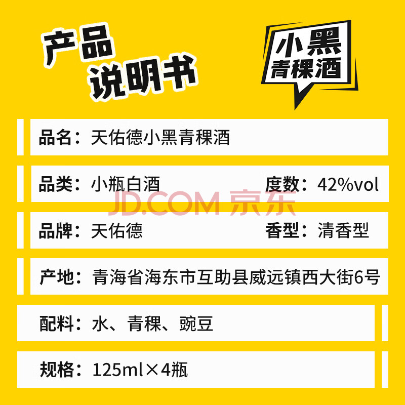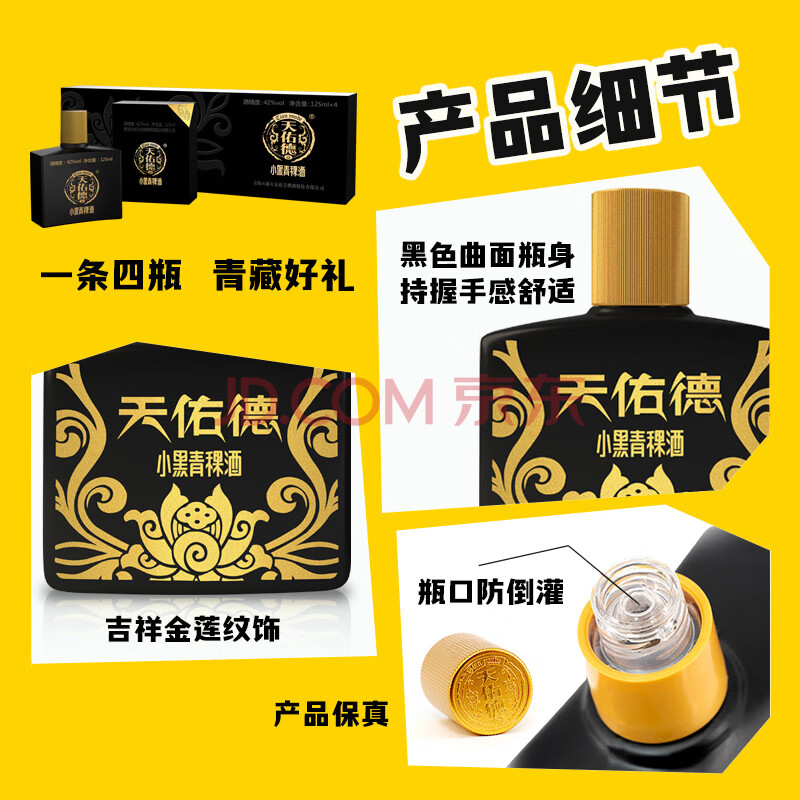商品相册:天佑德 小黑系列 清香型白酒42度125ml*4瓶单盒装【热门商品推荐】第