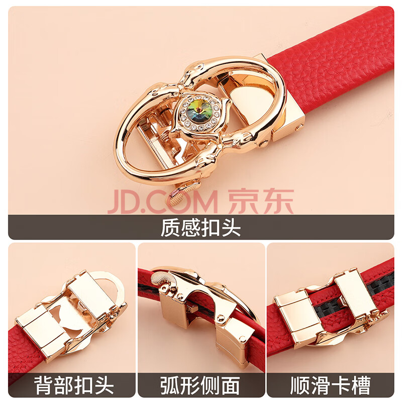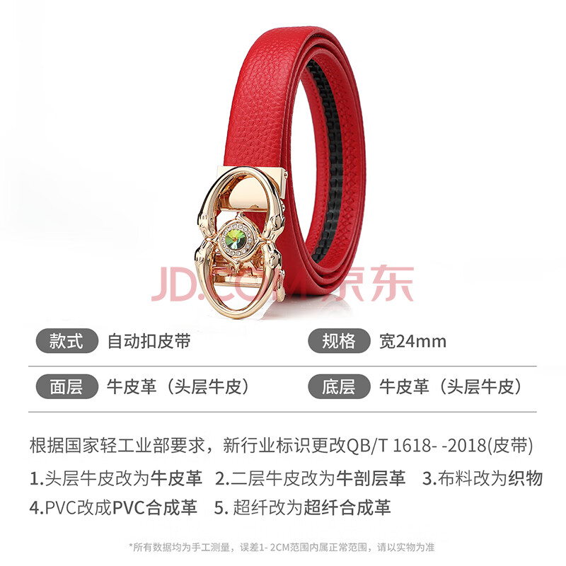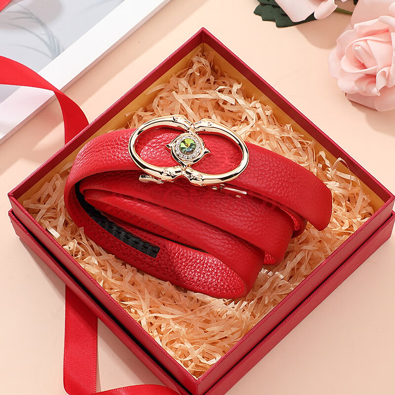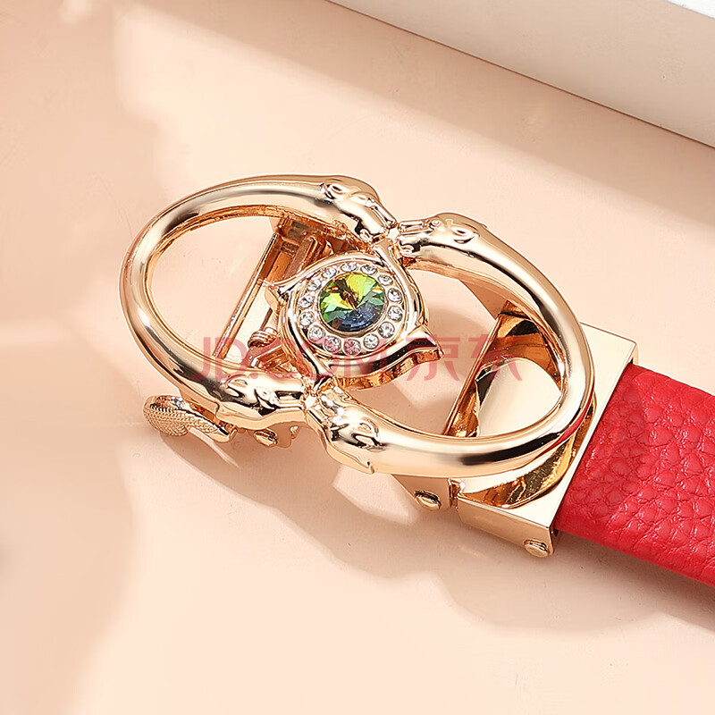 商品相册:鳄鱼恤本命年水钻女士自动扣皮带商务头层牛皮腰带女生日礼物12706红色第