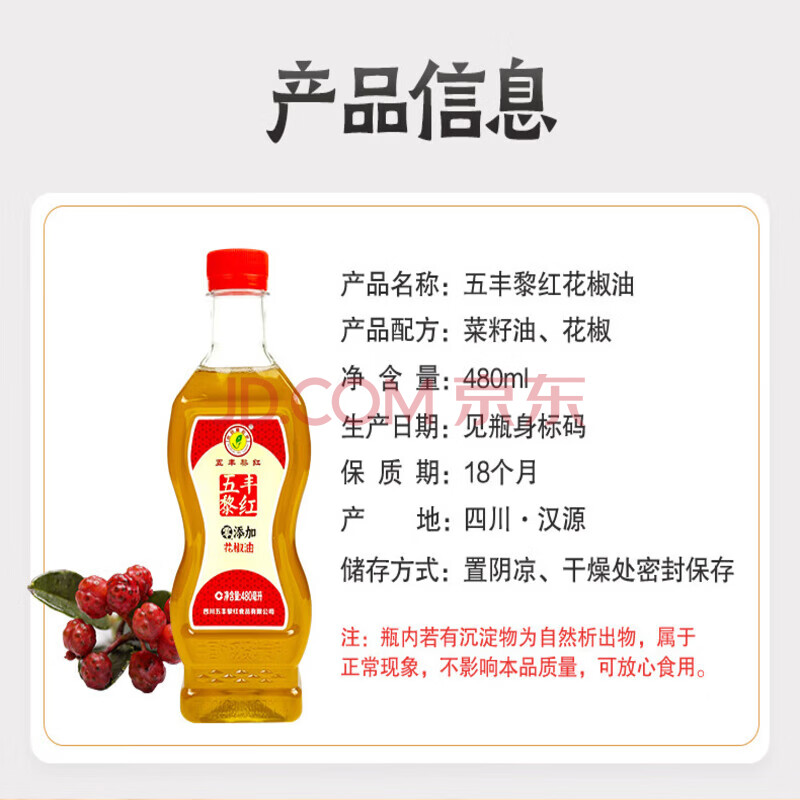 商品相册:五丰黎红 汉源花椒油480ml 四川特产麻椒油藤椒油调味油凉拌家用调料第