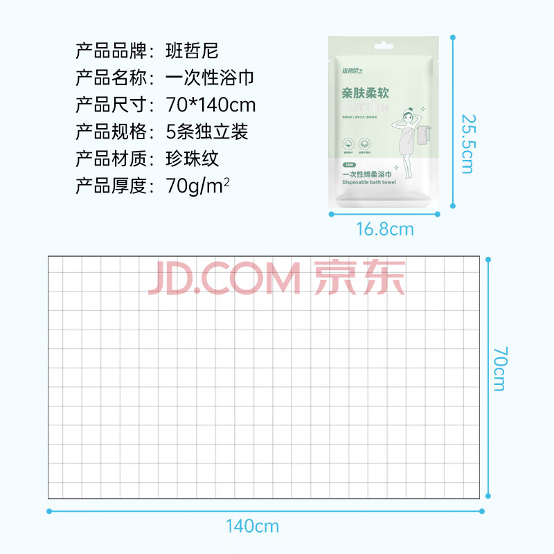 商品相册:班哲尼一次性浴巾毛巾加大厚待产旅行真空消毒压缩酒店独立包装用品第