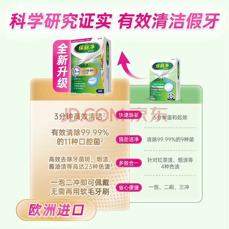 商品相册:保丽净假牙清洁片60片*2盒全半口泡腾清洗 矫正隐形牙套便携 热卖商品第