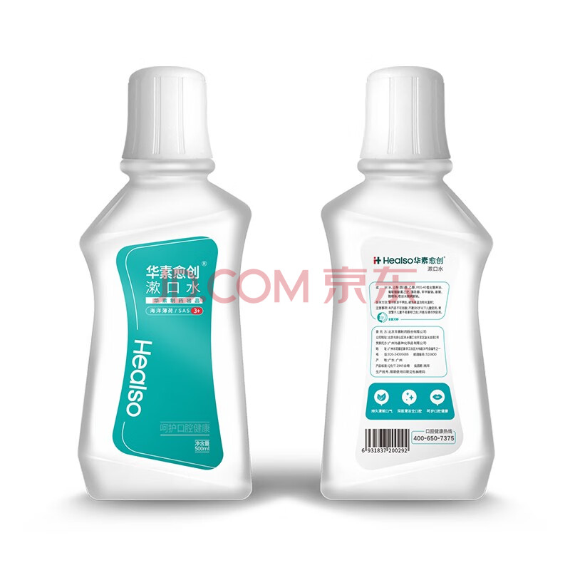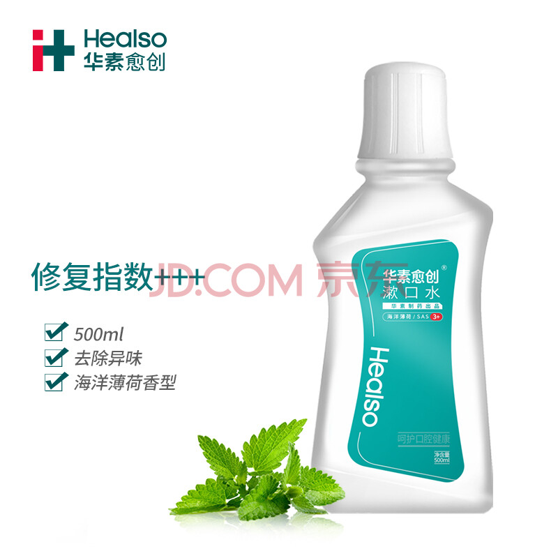 商品相册:华素愈创漱口水 饭后清洁 清新口气 优效修复3+便携含漱液500ml薄荷香型 第