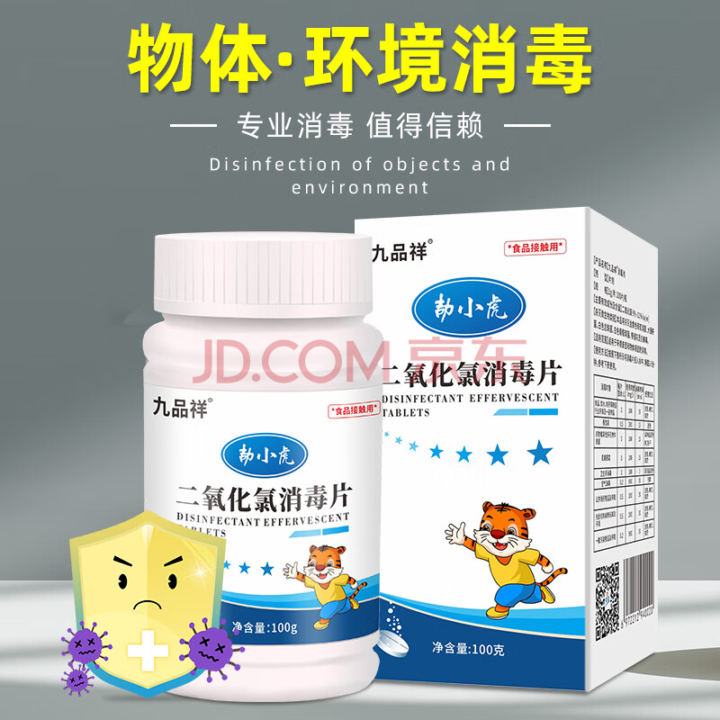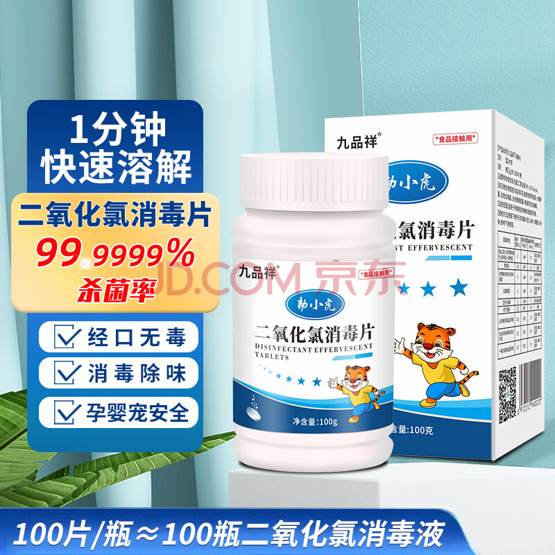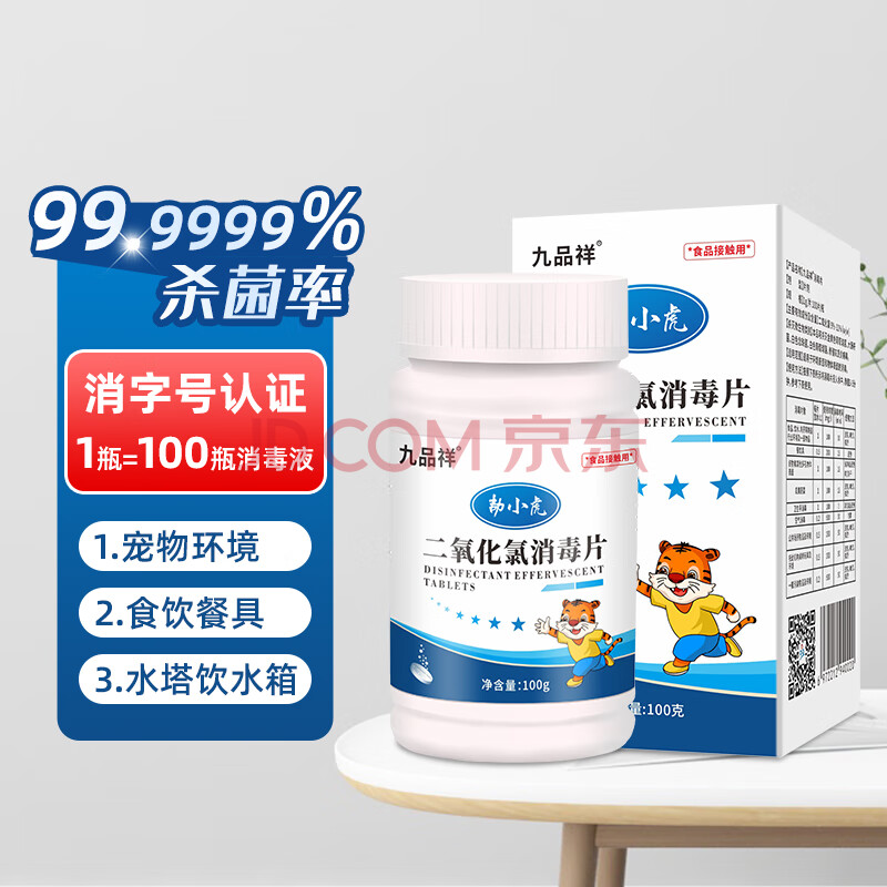 商品相册:九品祥消毒泡腾片家庭学校酒店餐具饮水箱宠物环境马桶消毒除味二氧化氯第