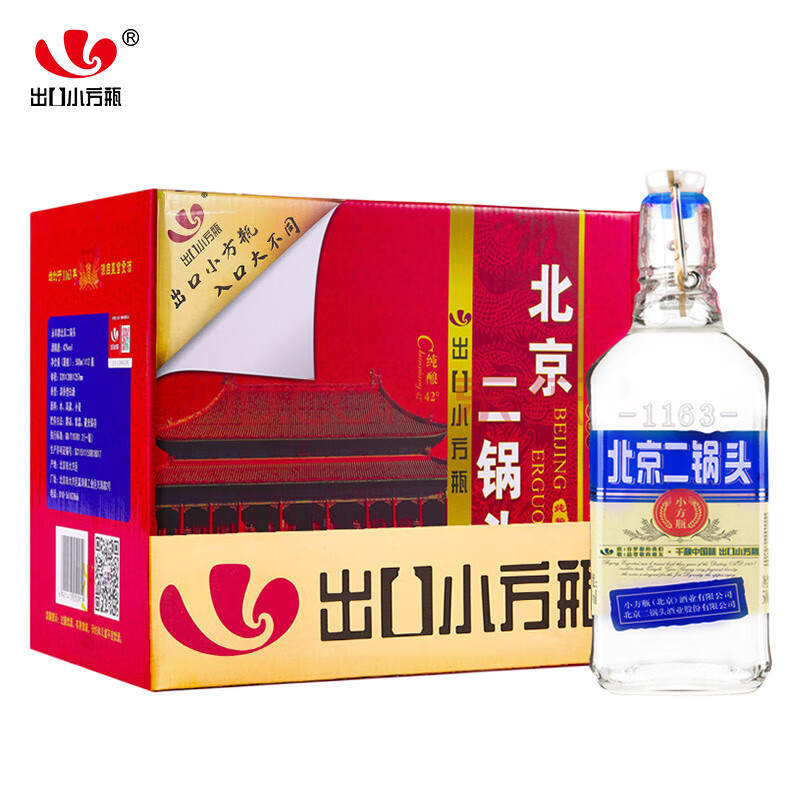 商品相册:出口小方瓶 经典蓝标 永丰牌 清香型白酒 42度 500ml*12瓶 北京二锅头第