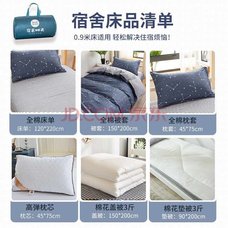 商品相册:云瑾 全棉学生被褥套装单人宿舍床六件套床上用品被子全套0.9米星图第