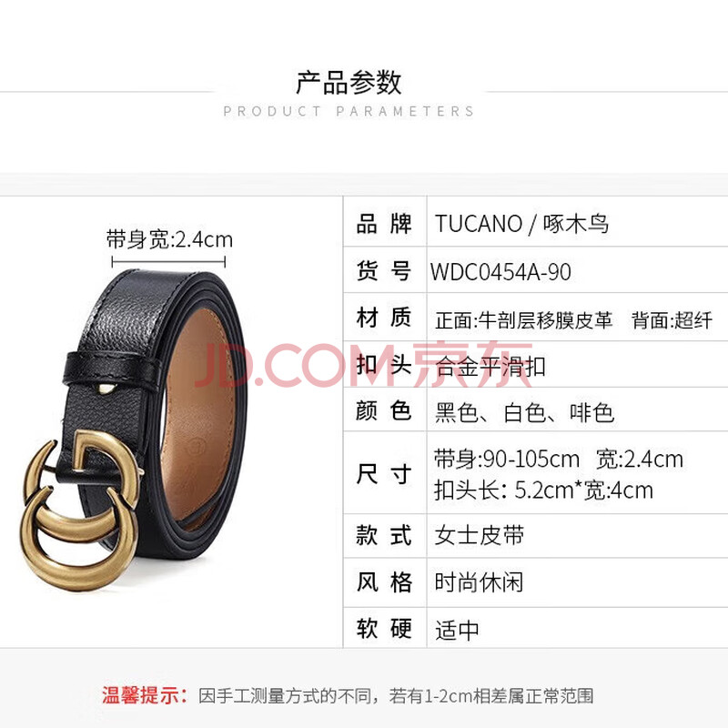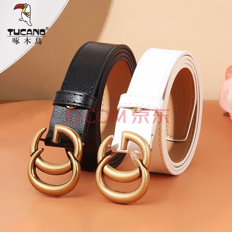 商品相册:啄木鸟(TUCANO)皮带女款二层牛皮裤带百搭韩版学生复古风合金平滑扣腰带生日礼物第