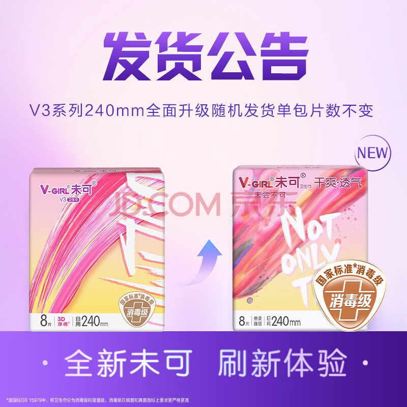 商品相册:未可消毒级超薄透气卫生巾含迷你日夜组合6包48片 京东自营第