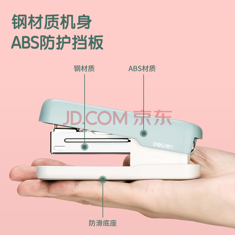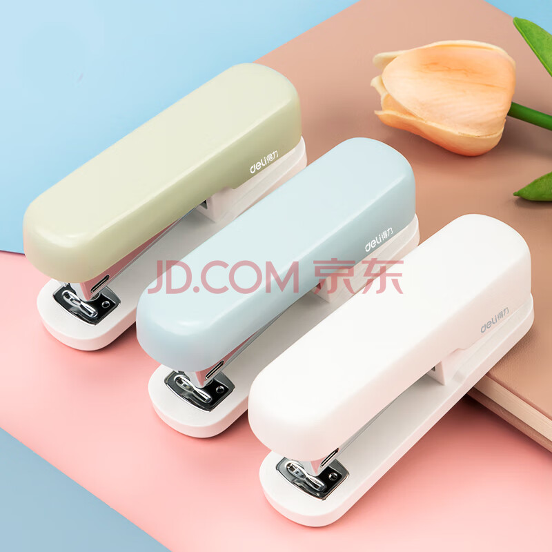 商品相册:得力(deli)【超级爆款】12号学生办公订书机 马卡龙色 适配24/6或26/6订书钉 浅蓝色 TA301-A第