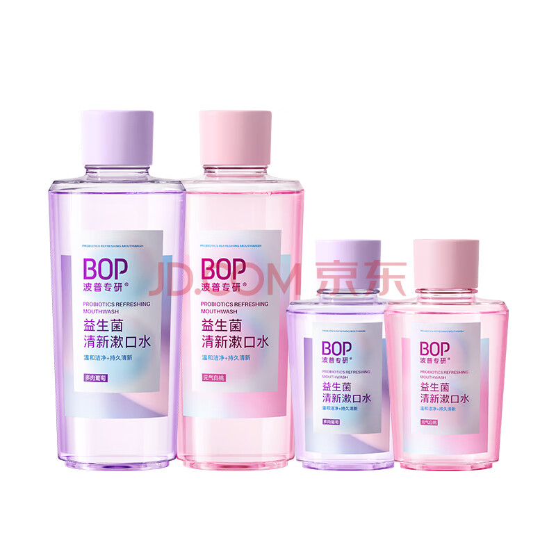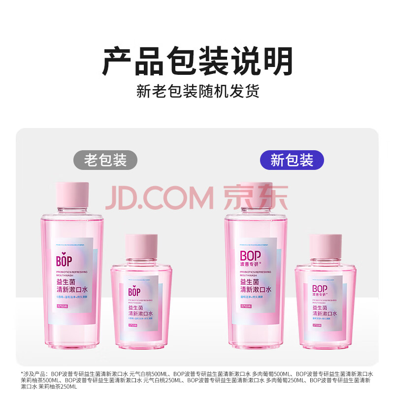 商品相册:波普专研(bop)益生菌漱口水口腔清洁护理元气白桃+多肉葡萄(500ml*2+250ml*2)第