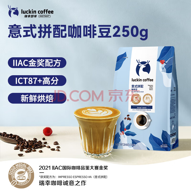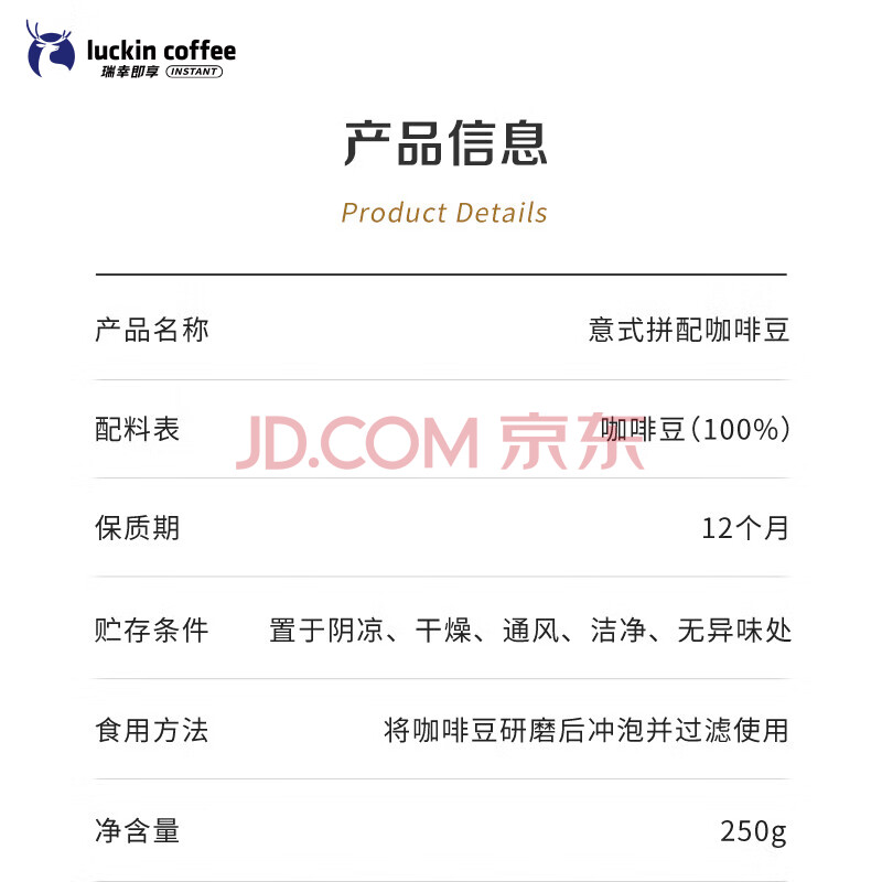 商品相册:瑞幸咖啡咖啡豆意式拼配咖啡豆250克/袋 深烘手磨粉醇香第