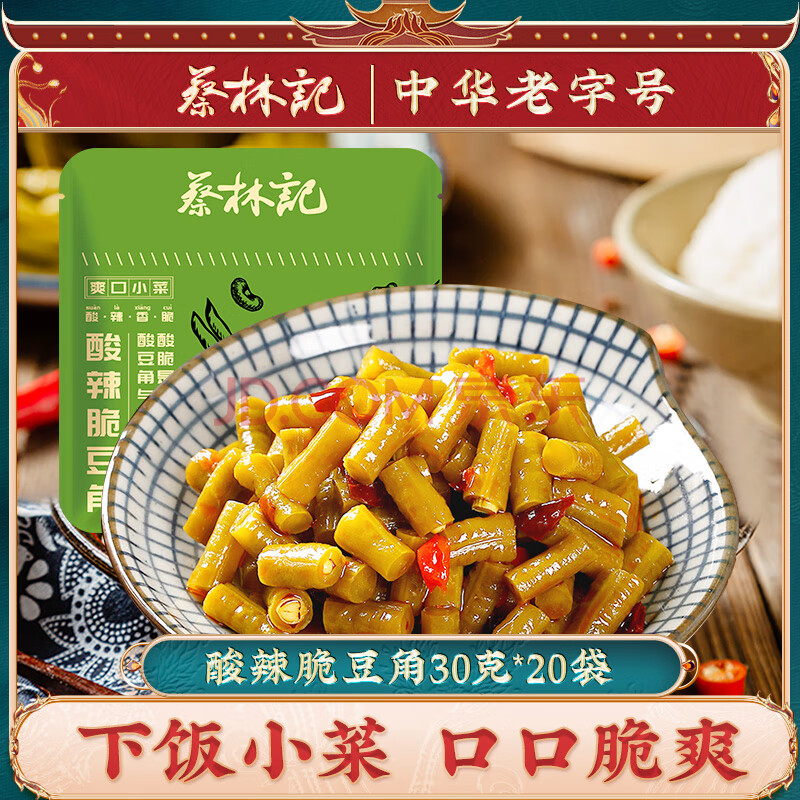 商品相册:蔡林记中华老字号酸脆豆角30g*20包袋装腌制泡菜酱菜咸菜下饭菜泡豇豆第