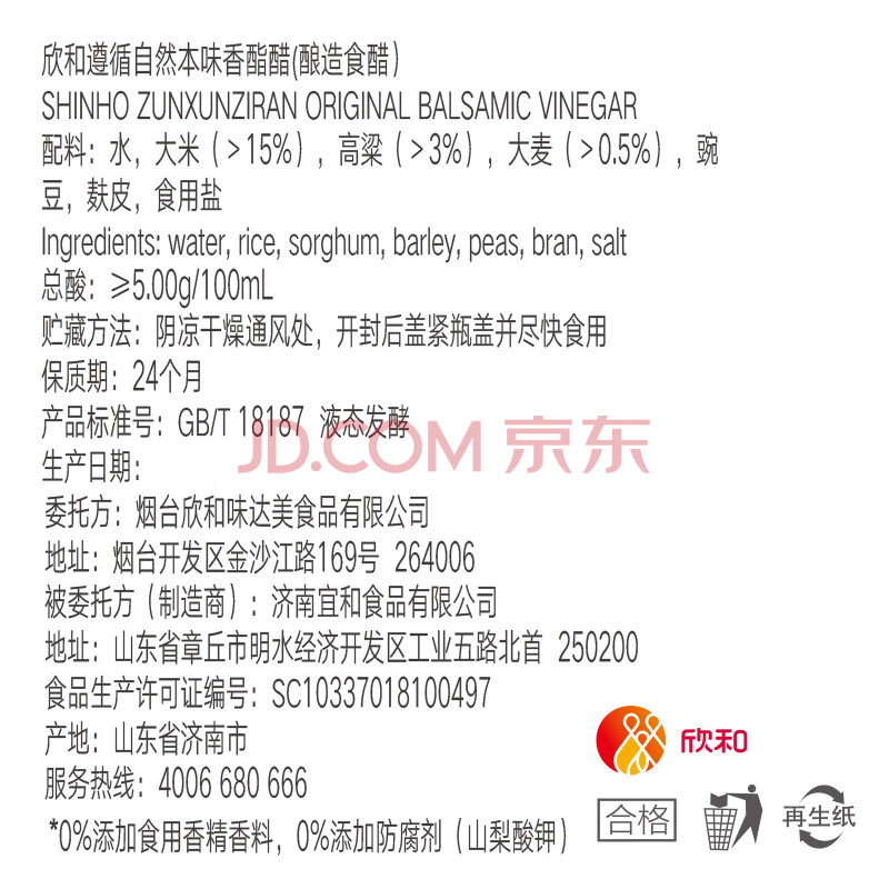 商品相册:遵循自然本味香酯醋5度375ml 食用香醋 饺子凉拌醋 陈醋 欣和出品第