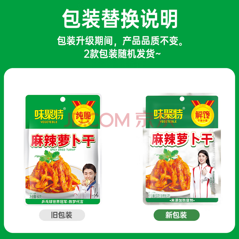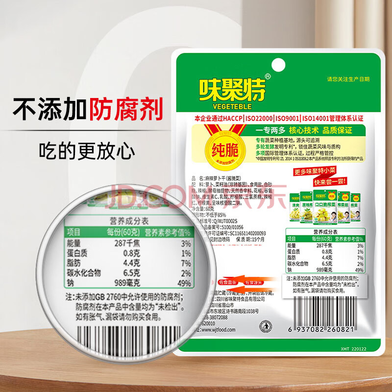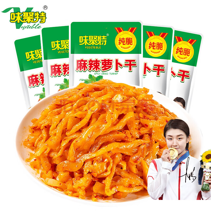 商品相册:味聚特 榨菜咸菜下饭菜麻辣萝卜干 佐餐拌面即食酱菜腌菜 五连包60g*5第