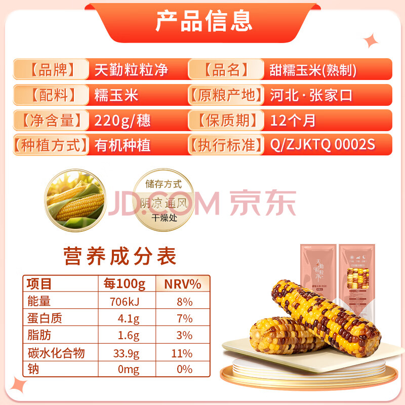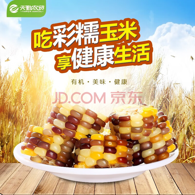 商品相册:天勤粒粒净 有机彩花糯玉米(3.52斤)8穗*220g新玉米棒玉米真空包装早餐第