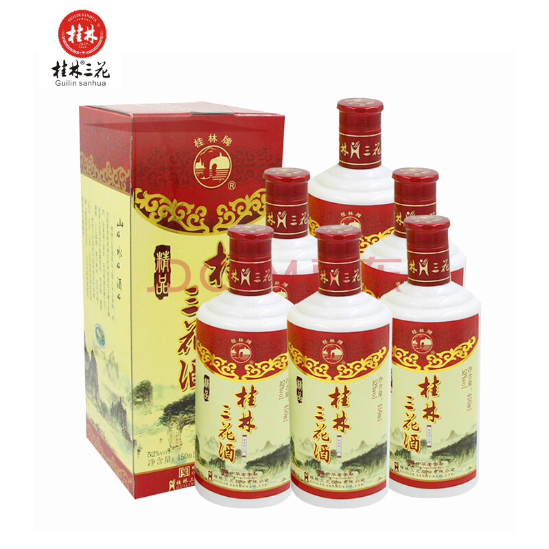 商品相册:桂林三花酒 精品乳白瓶 米香型白酒 52度 450ml*6瓶 整箱装 送礼第