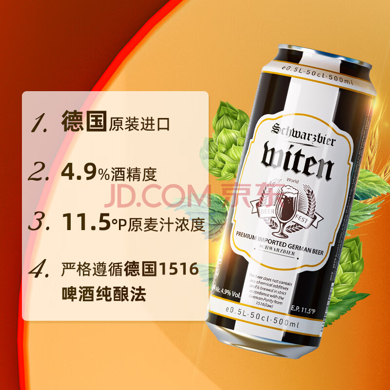 商品相册:万格纳 黑啤酒 500ml*6罐 尝鲜装 焦香浓郁 口感醇厚 德国原装进口第