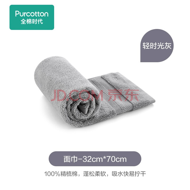 商品相册:全棉时代毛巾纯棉洗脸家用吸水柔软速干男女士面巾时光灰32*70cm 第