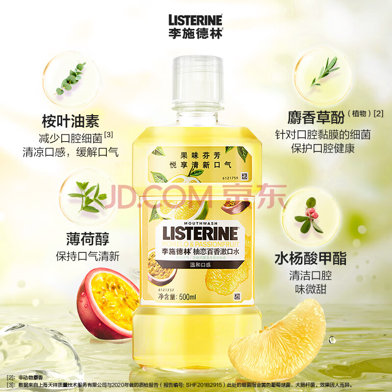 商品相册:李施德林(Listerine)漱口水 柚恋百香果味清新口气深层清洁女500ml*3第