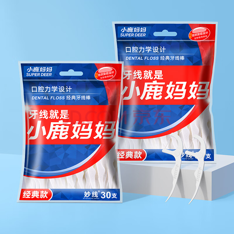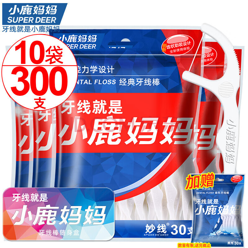 商品相册:小鹿妈妈经典牙线棒细滑牙线牙签30支/袋*10袋 共300支 随身盒 方便携带第