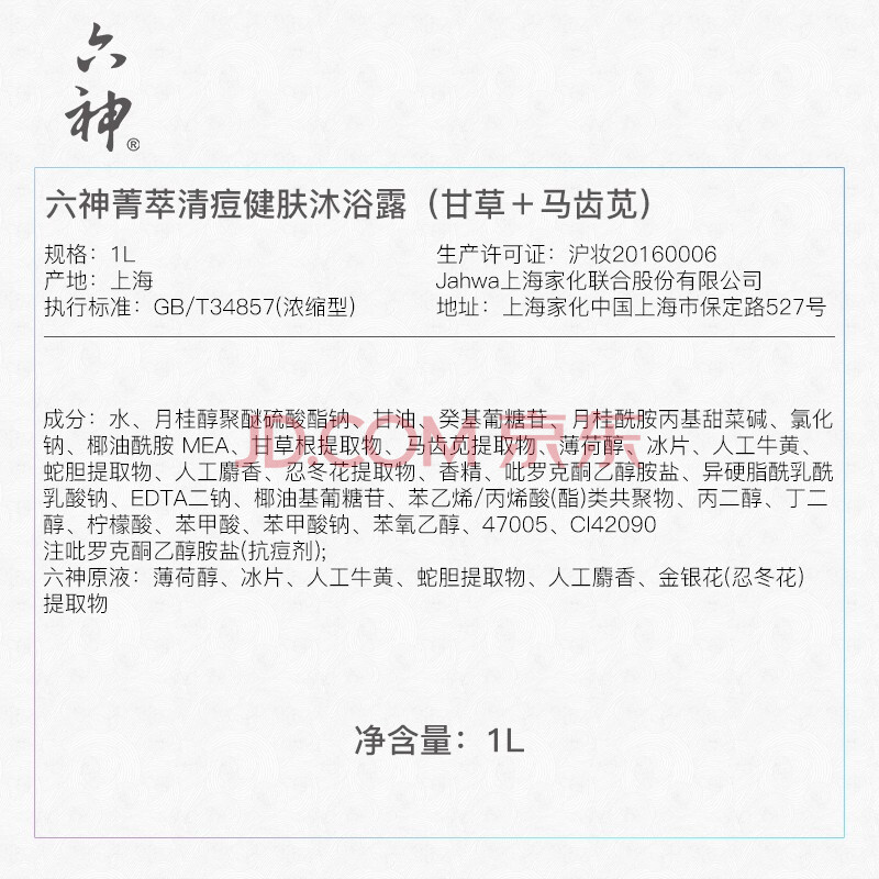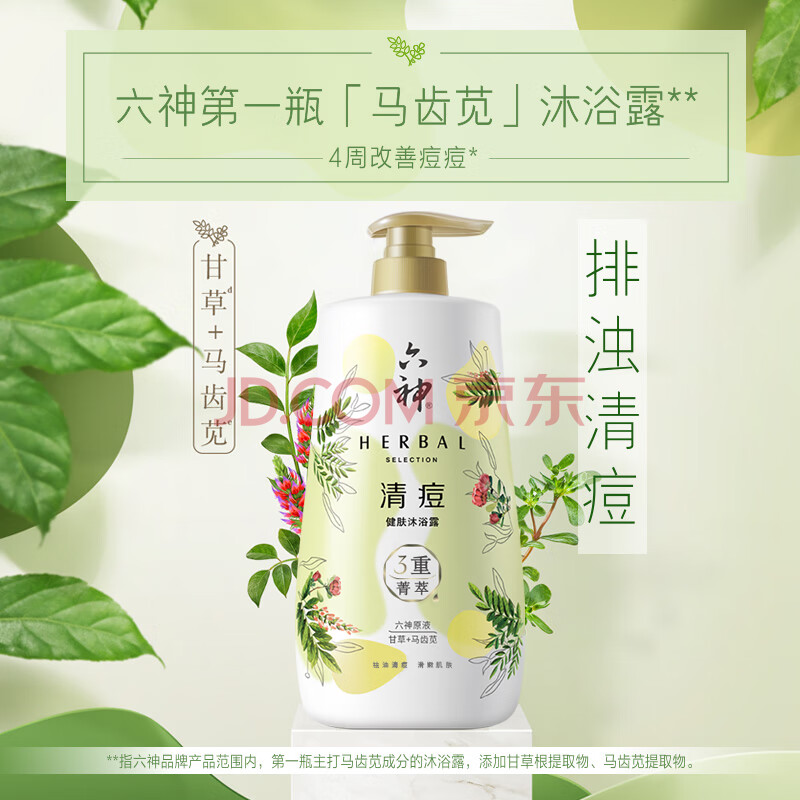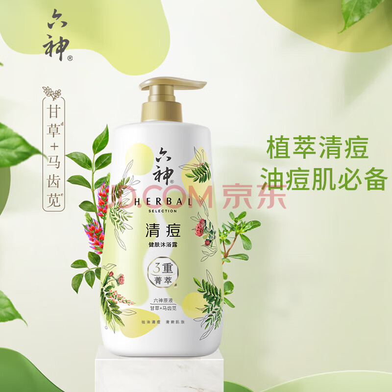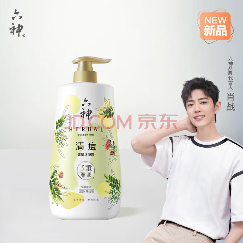商品相册:六神【肖战同款】菁萃清痘香氛沐浴露1L净痘光滑 马齿苋+甘草男士女士第