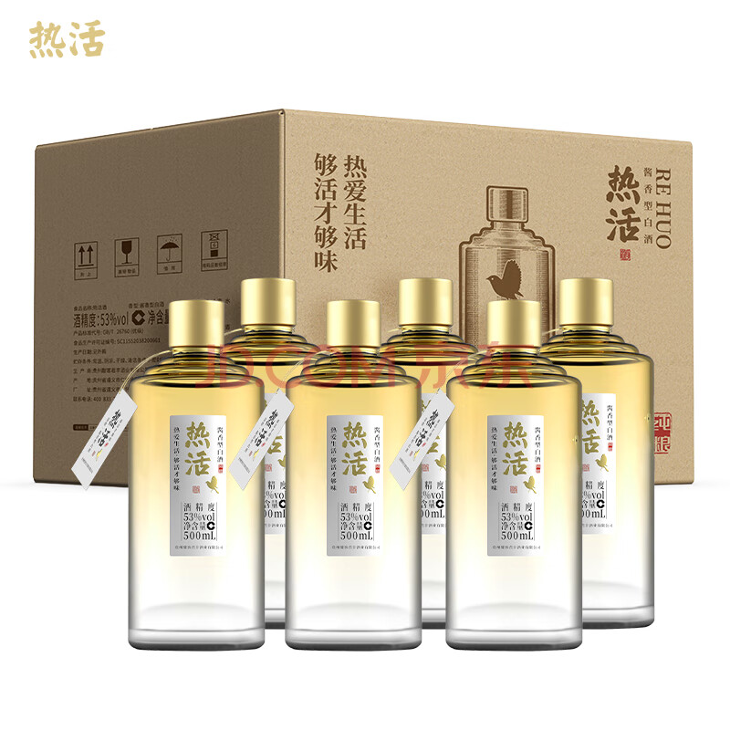 商品相册:热活酱香型白酒 53度贵州大曲口粮酒500ml*6 整箱装 送礼白酒第
