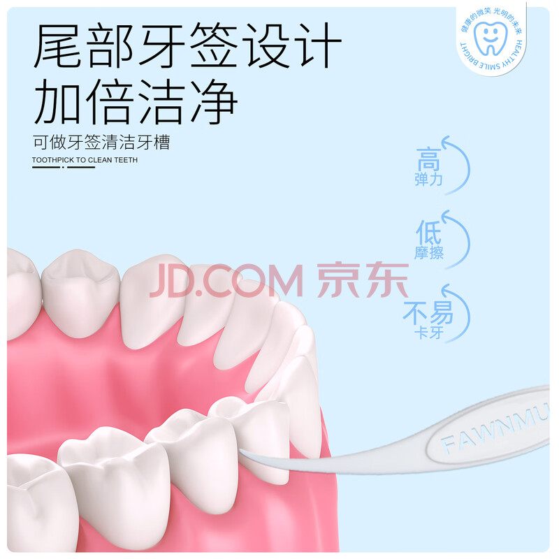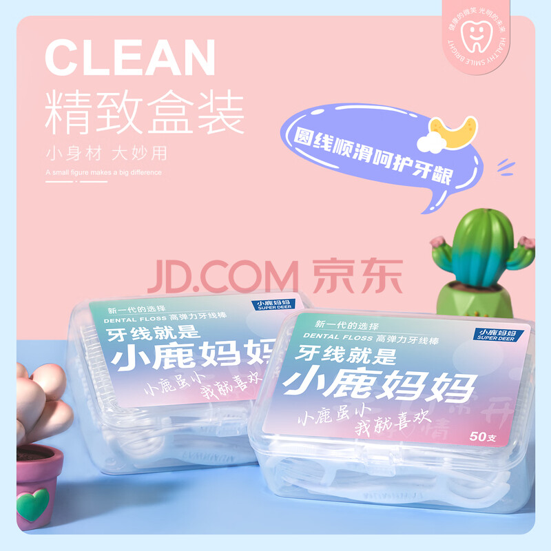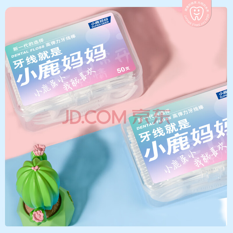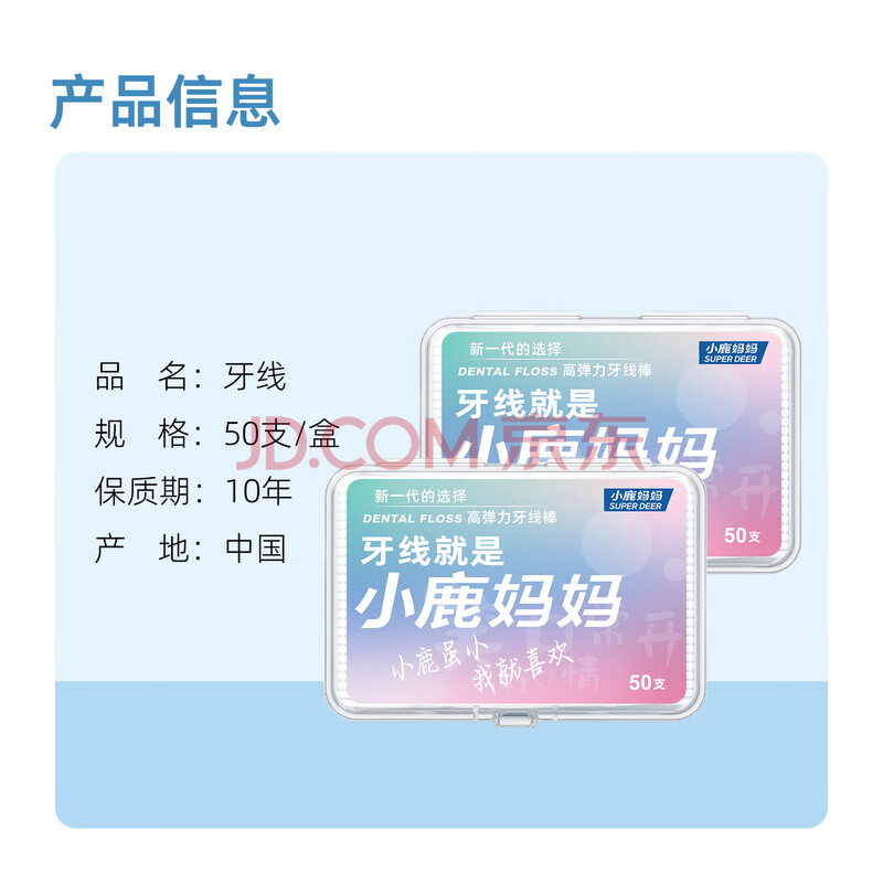 商品相册:小鹿妈妈 圆线护理牙线棒50支X3盒 清洁齿缝家庭装超细牙签便捷第