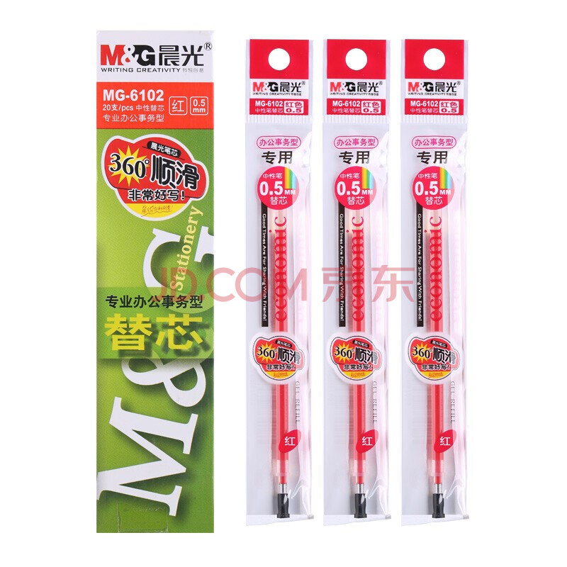 商品相册:晨光(M&G)MG6102/0.5mm子弹头中性笔芯 签字笔替芯 水笔芯(Q7/6600适用)红色 20支/盒 2盒装【ZY】第