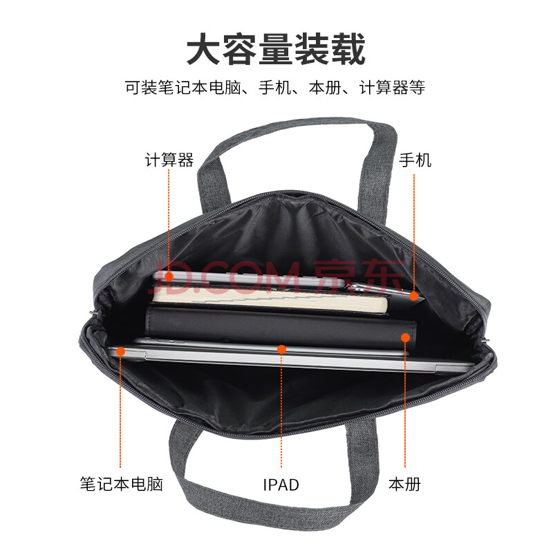 商品相册:得力(deli)5590 便携加厚立体办公手提袋/会议包/事务包/文件包/商务拉链袋电脑公文包 灰色 单个装 第