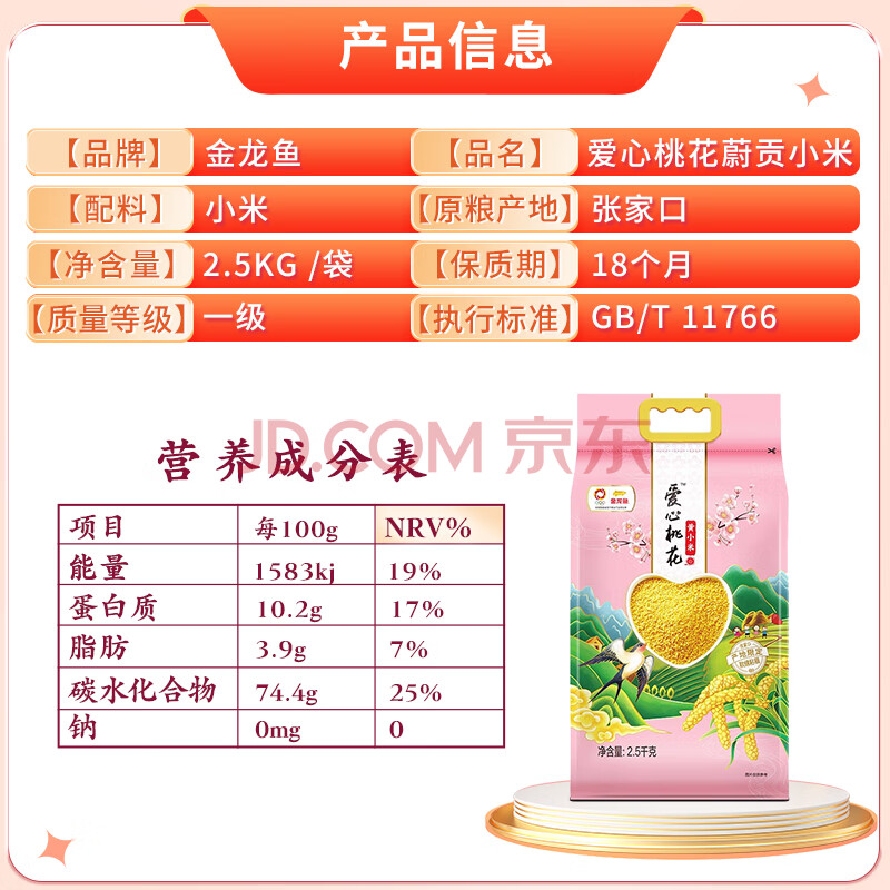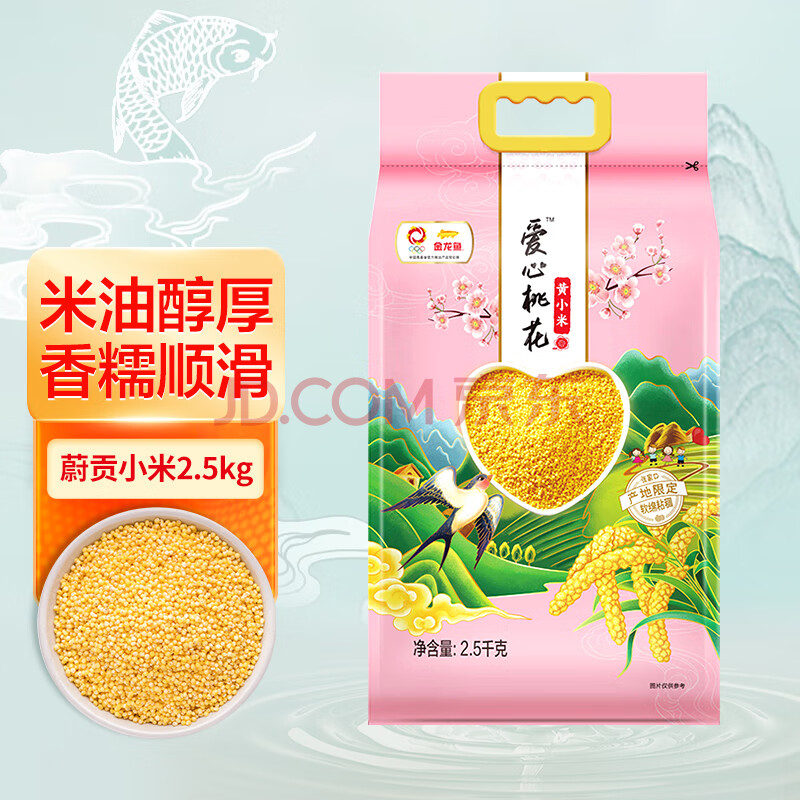 商品相册:金龙鱼 蔚县小米 5斤 五谷杂粮 张家口蔚县贡米 爱心桃花黄小米 第