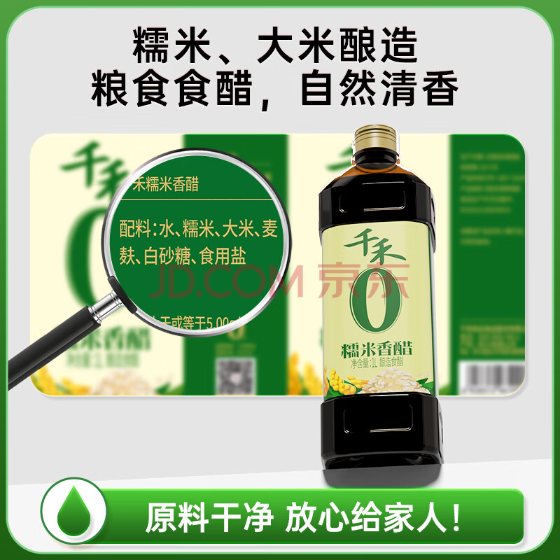 商品相册:千禾糯米香醋5度 1L*2瓶【0添加】凉拌饺子调料零添加家用食醋第