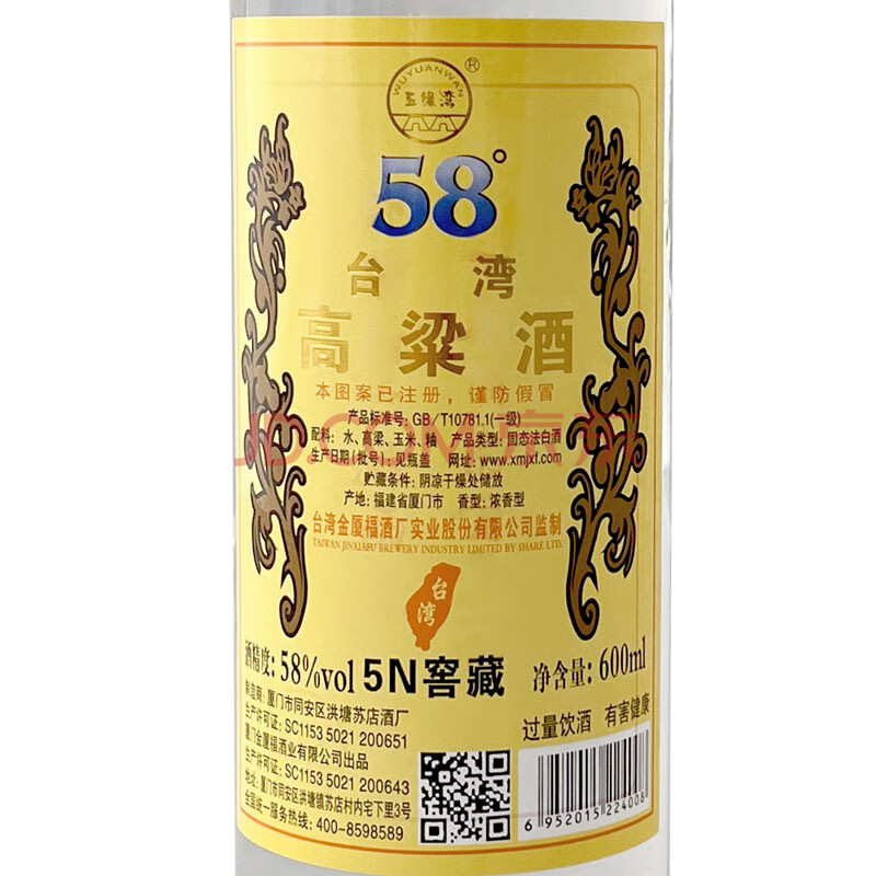 商品相册:五缘湾 台湾高粱酒 五N窖藏 浓香型白酒 58度 600ml*6瓶 手提装厦门高粱第
