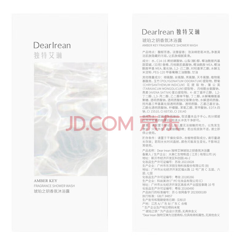 商品相册:独特艾琳(Dear lrean)香氛沐浴露清洁保湿持久留香易冲洗不假滑男士成人350ml琥珀之钥第