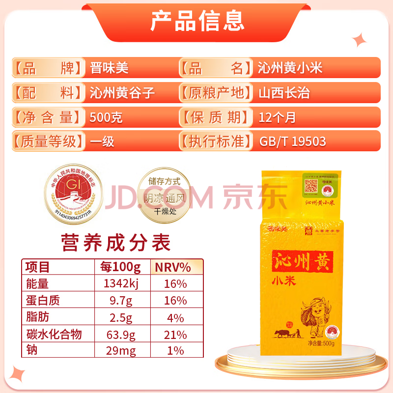 商品相册:晋味美 正宗沁州黄小米2斤 山西小米 黄小米 小米粥 五谷杂粮 真空装第