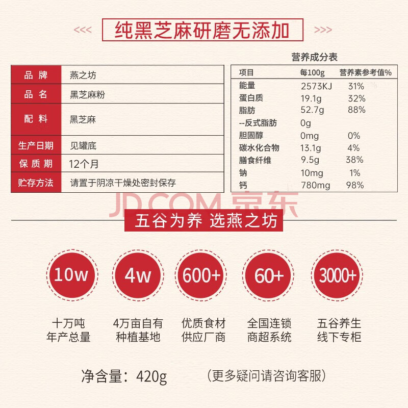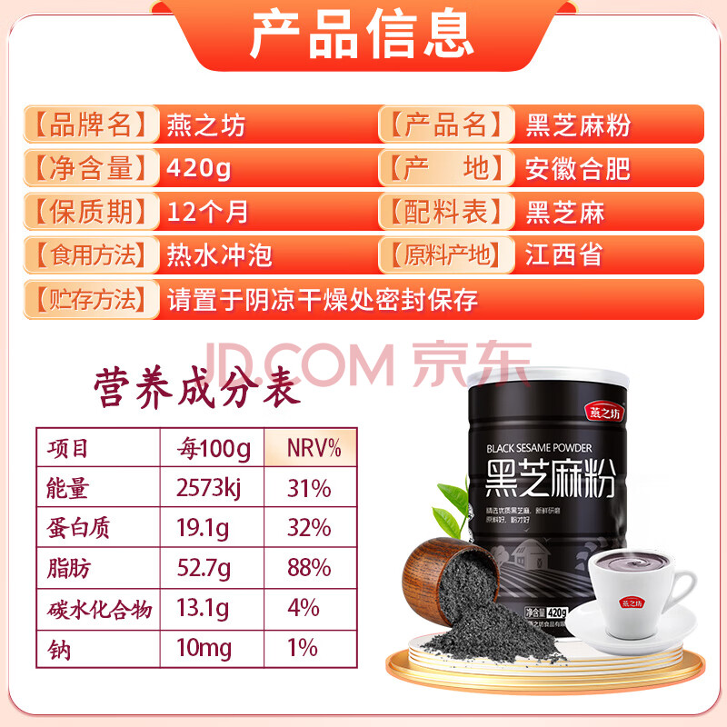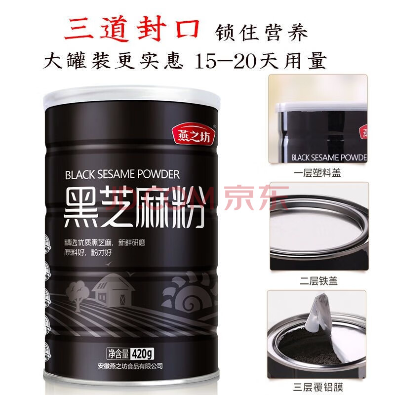 商品相册:燕之坊黑芝麻粉420g纯黑芝麻汤圆馅料无添加早餐代餐粉杂粮无糖第