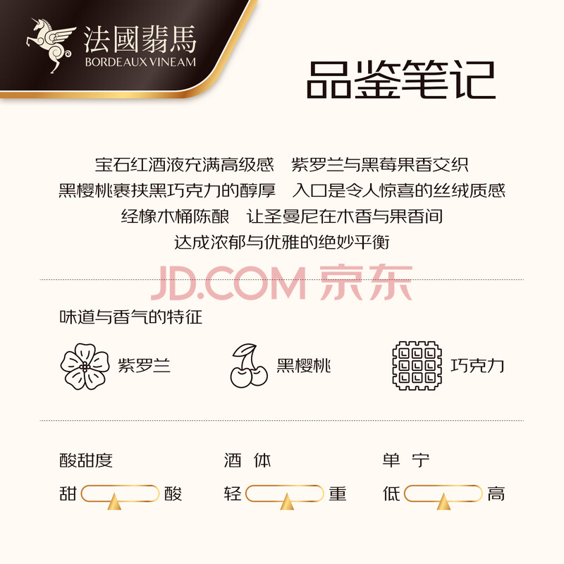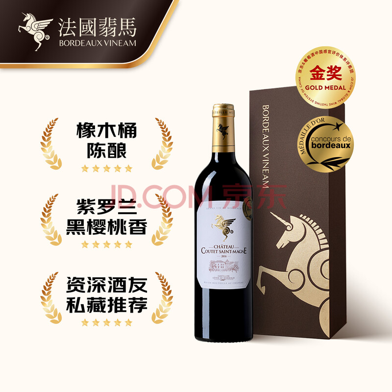 商品相册:翡马(BORDEAUXVINEAM)圣曼尼酒庄干红葡萄酒单支礼盒装 750ml 法国进口红酒第