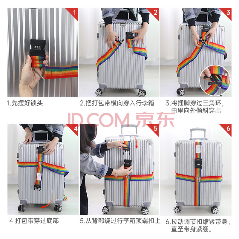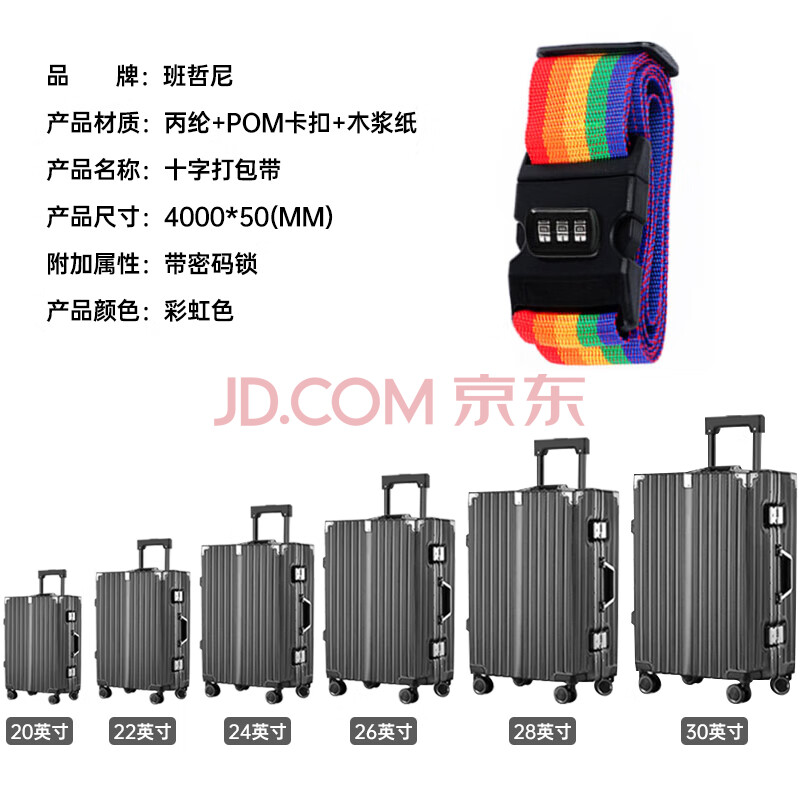 商品相册:班哲尼十字打包带出国托运拉杆箱捆绑带扎带行李箱托运打包带密码锁旅行安全捆箱带含行李牌彩虹色第
