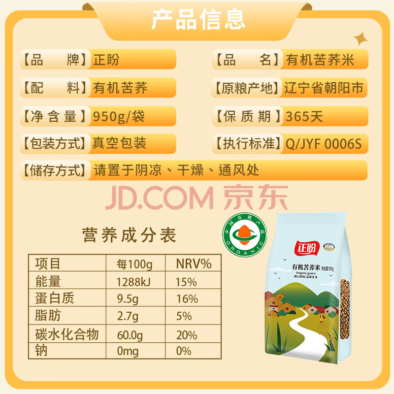 商品相册:正盼 有机苦荞米1.9斤/袋 苦荞麦 五谷杂粮 粗粮 真空包装第