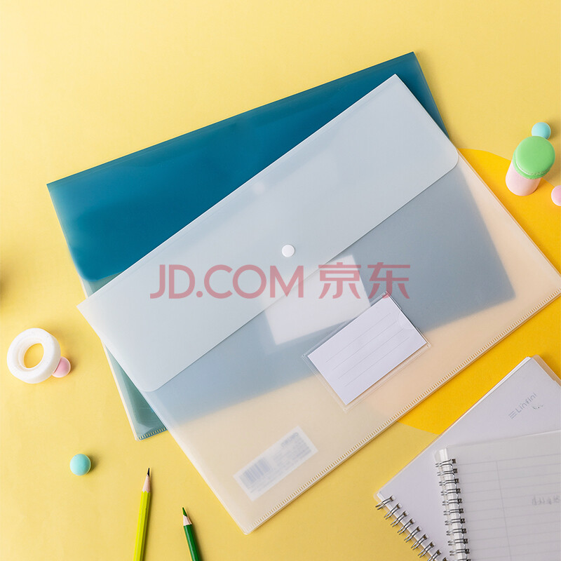 商品相册:得力(deli)5506 A4透明双面彩色文件袋 按扣资料袋会议袋档案袋 财务票据办公试卷收纳袋 颜色随机 10只装第