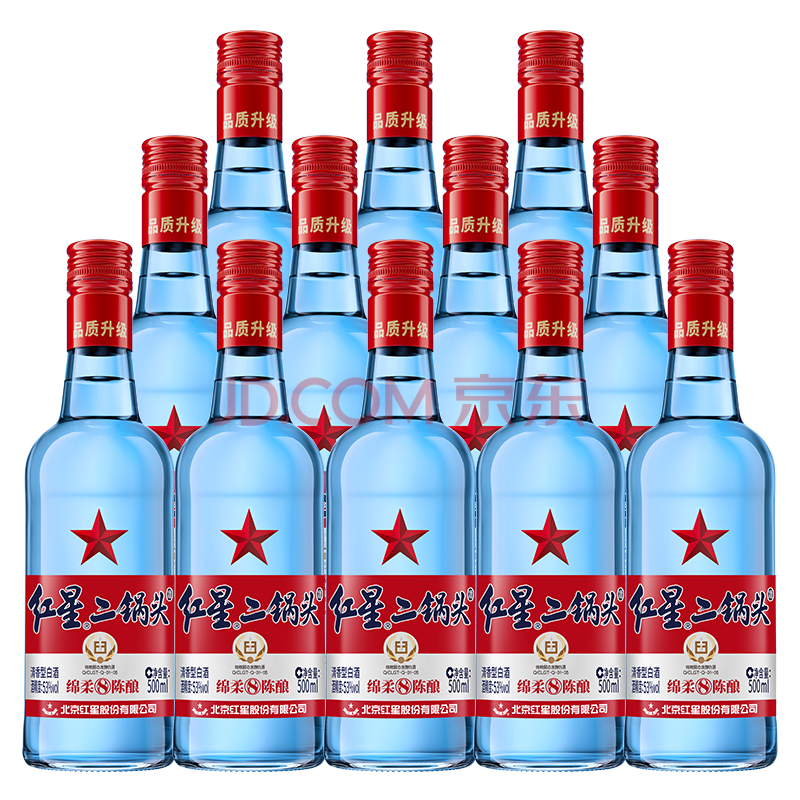 商品相册:红星二锅头 蓝瓶绵柔8陈酿 清香型白酒 53度 500ml*12瓶 整箱装口粮酒第