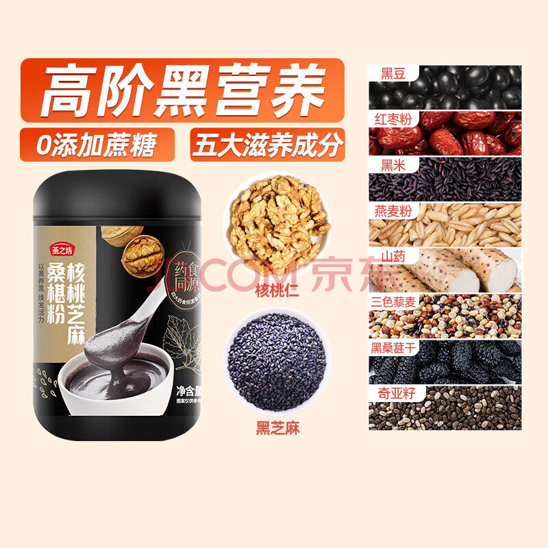 商品相册:燕之坊 核桃芝麻桑椹粉1斤(五谷杂粮禅食代餐粉黑芝麻黑豆 )第