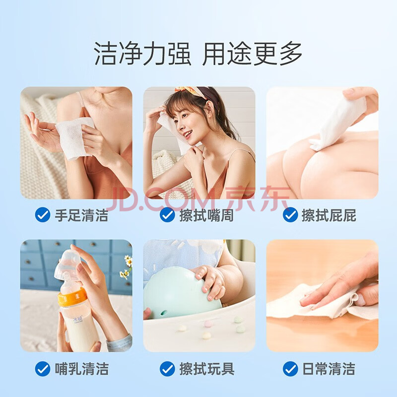 商品相册:子初米胚芽手口柔湿巾80抽*6包亲肤洁净加大加厚湿纸巾清洁湿巾家庭装第