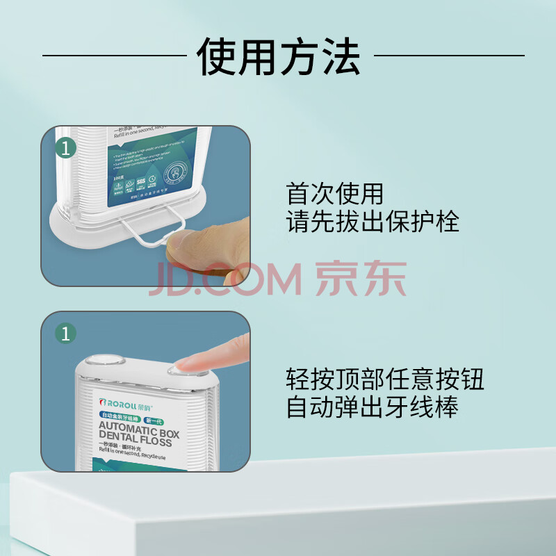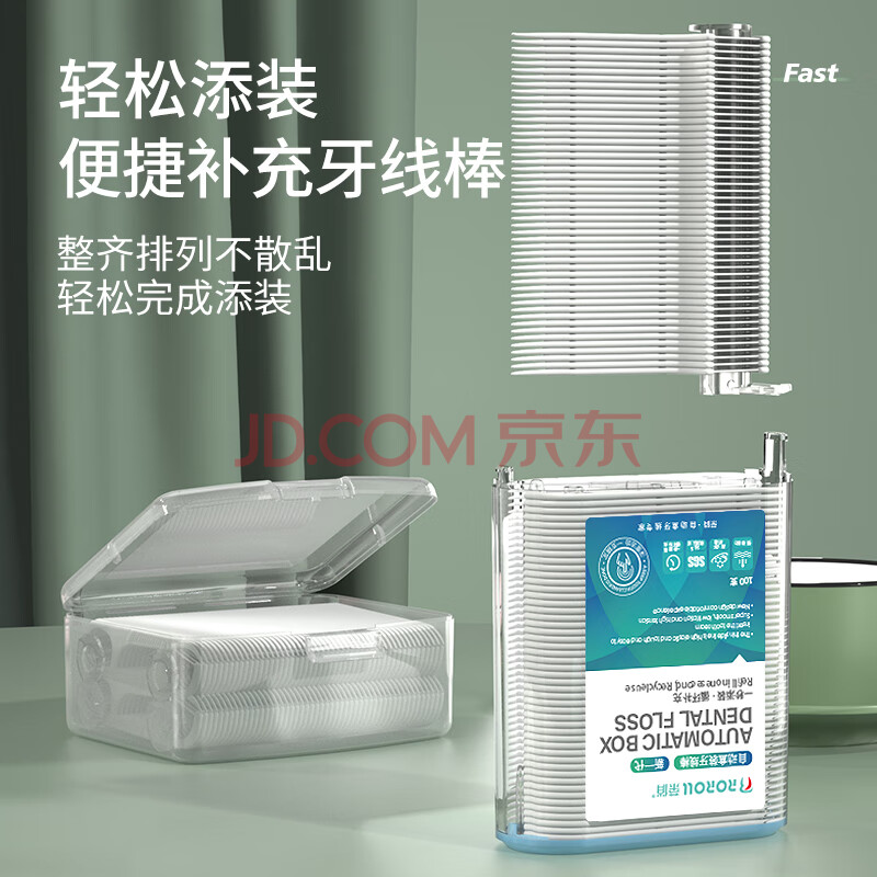 商品相册:荣俏自动盒牙线超细家庭装按压弹出牙签线成人便携收纳盒牙线棒310支第