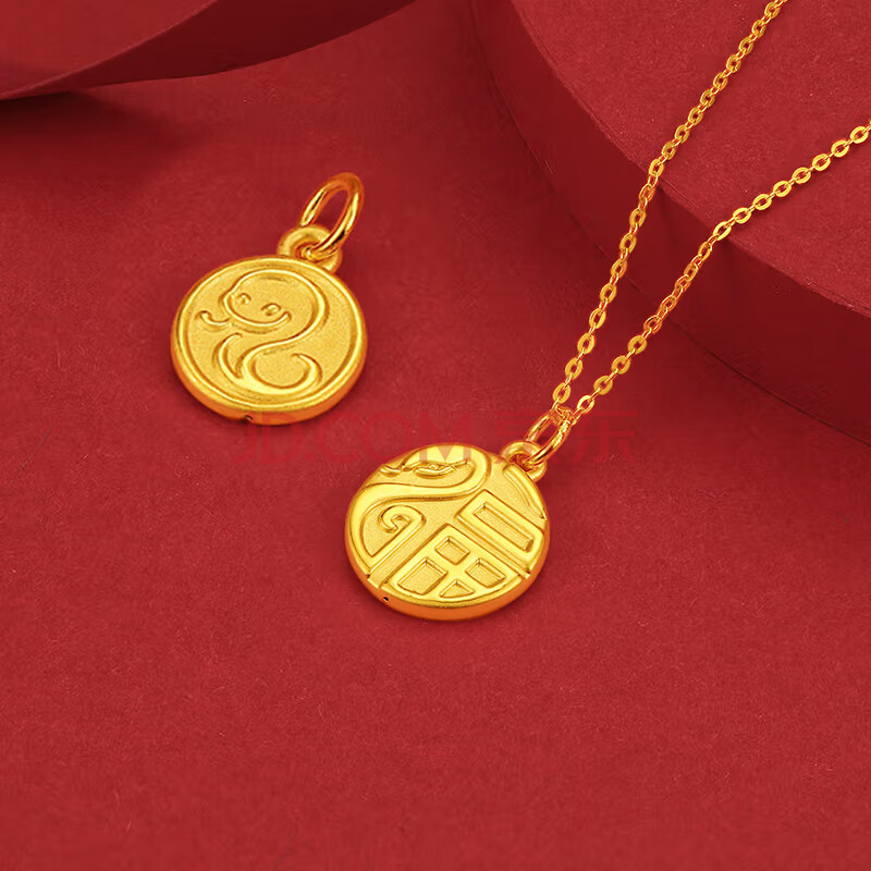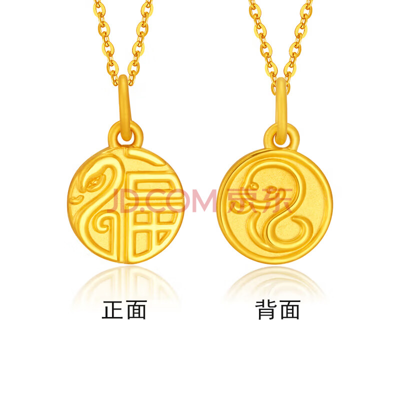 商品相册:Lossot生日礼物女生可爱足金福蛇黄金吊坠女5D硬金蛇生肖本命年项链第