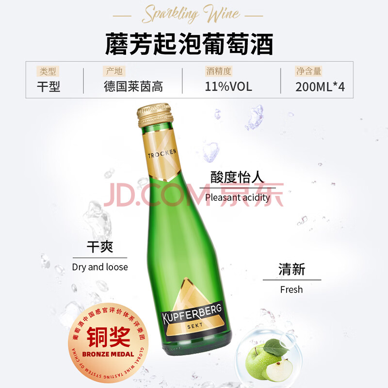 商品相册:汉凯蘑芳起泡酒 200ml*4 德国进口伴手礼小瓶酒节日礼盒团圆送礼第