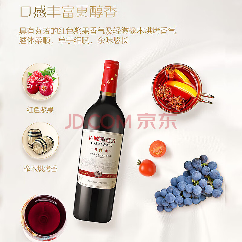 商品相册:长城耀世东方特藏6橡木桶解百纳干红葡萄酒750ml*6瓶整箱装红酒第