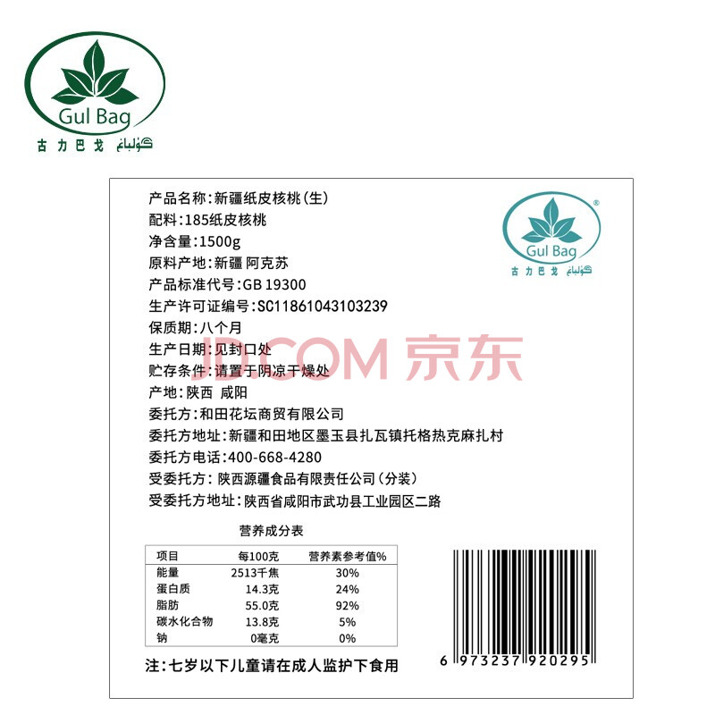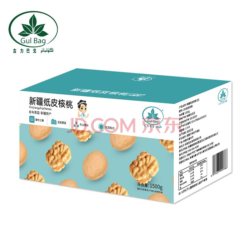 商品相册:古力巴戈京东专供新疆185纸皮2025年新核桃1500g礼盒装原味坚果3斤第