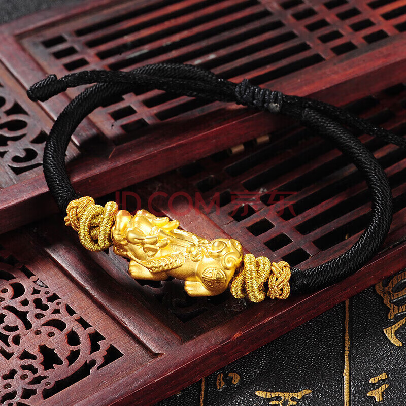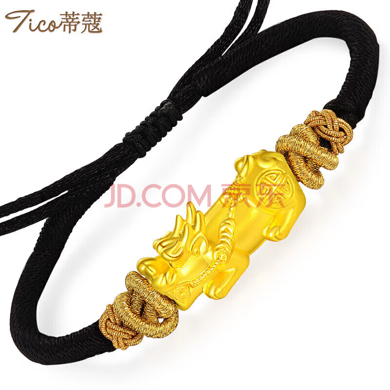 商品相册:蒂蔻(Tico)招财貔貅黄金手链男女编织黑绳足金转运珠路路通手串生日礼物第
